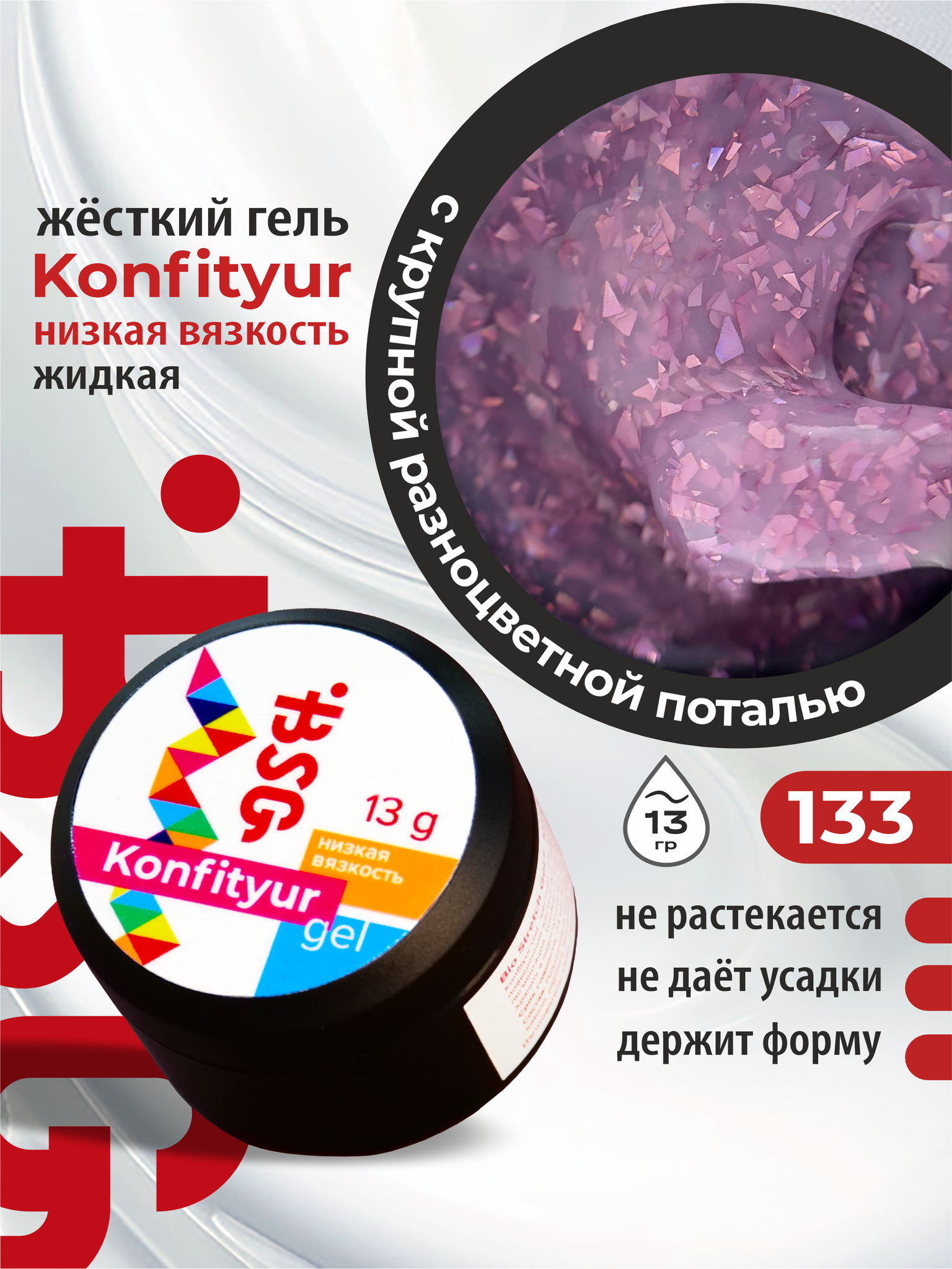 За счёт свой низкой (жидкой) вязкости (консистенции) гель удивительно быстро и легко разравнивается, поэтому он идеально подойдёт для "скоростных" мастеров, экономящих время в работе.