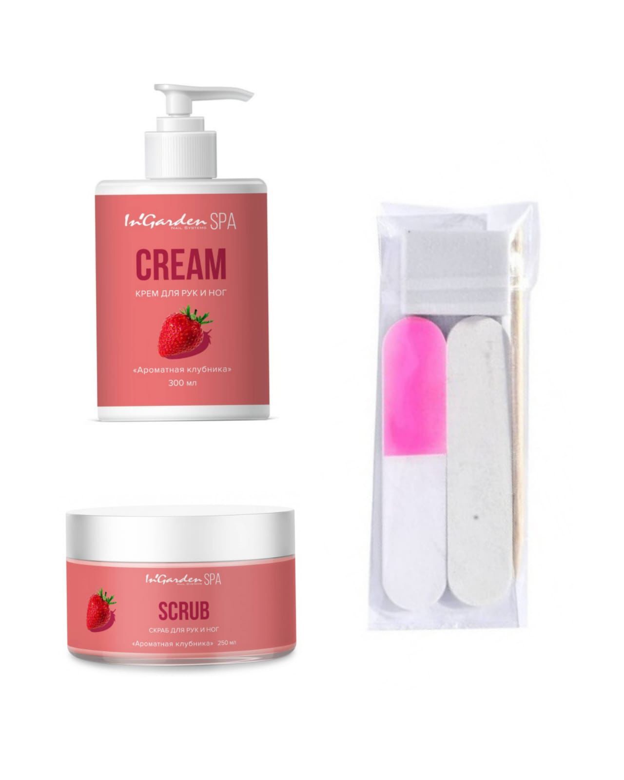 1.Скраб для рук и ног In’Garden SPA «Ароматная клубника» 250 мл.