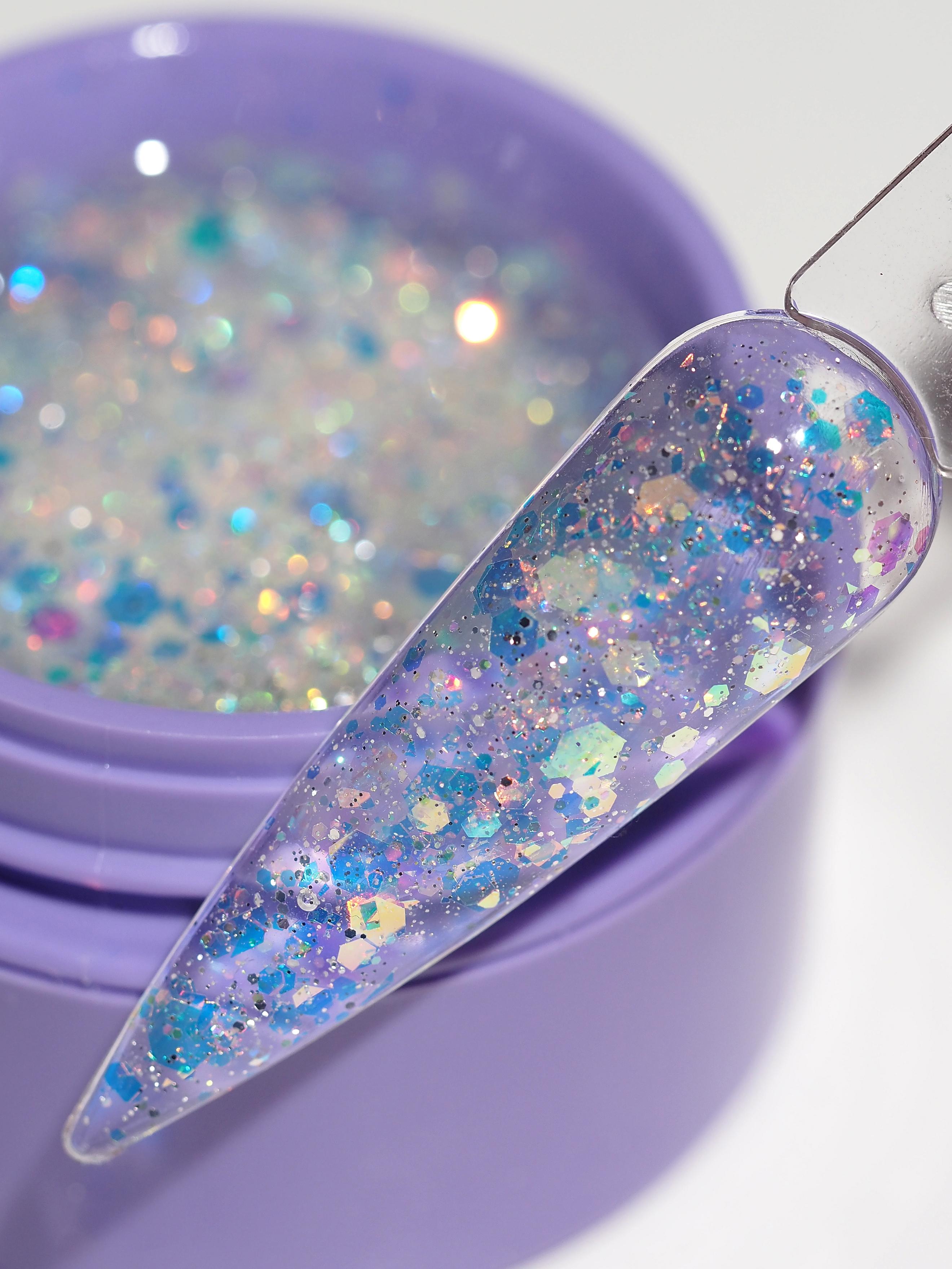7 сверкающих полупрозрачных гелей в универсальных нюдовых оттенках. Многоуровневые голографические шестигранники создают эффект “аквариума” и завораживающие переливы.