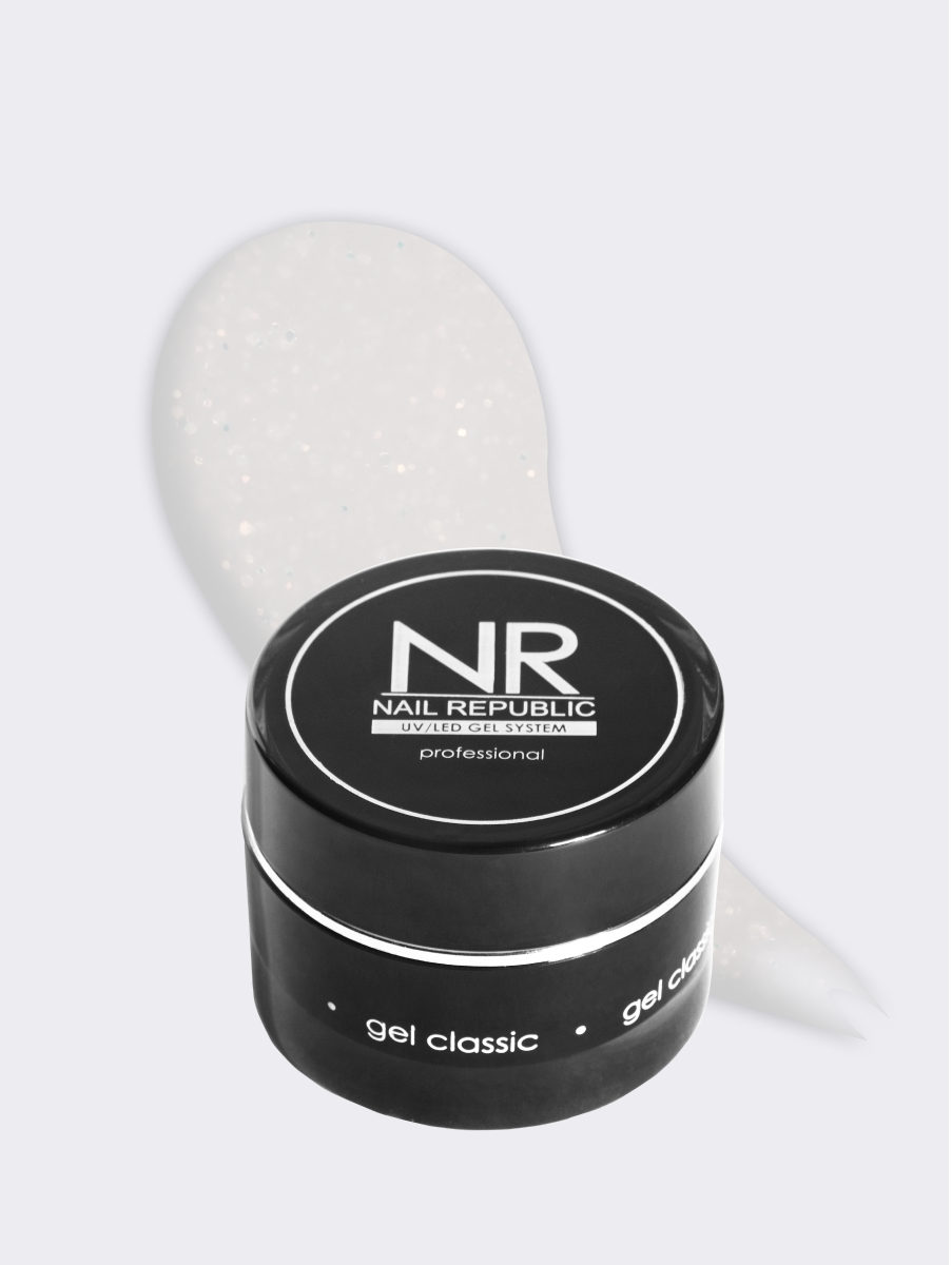 Мы знаем, что гели с блёстками обычно густые и тяжёлые в работе. Поэтому сделали среднюю, чуть более жидкую текстуру, чем у наших стандартных гелей без дроби.